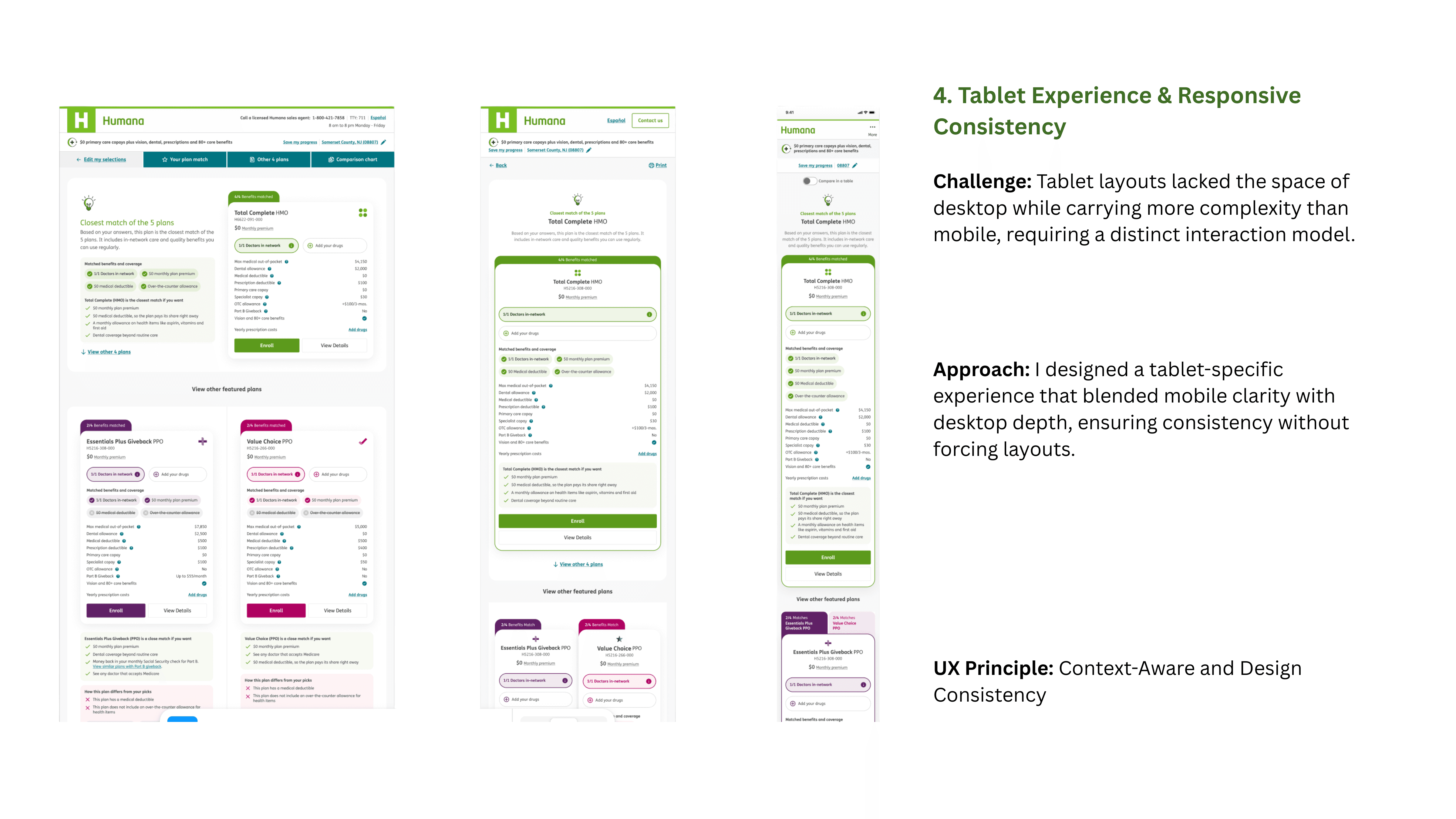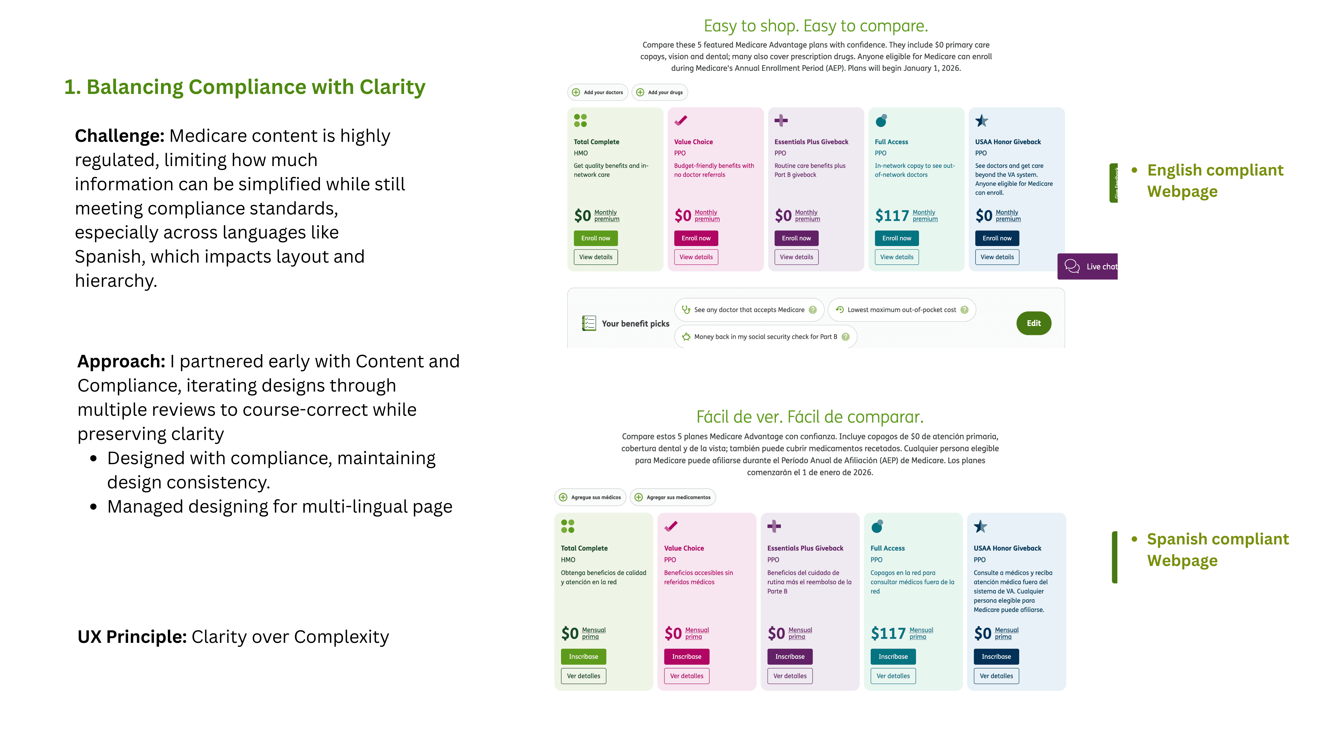 Every concept decision from plan descriptions and CTAs to comparison logic and navigation patterns was evaluated against these principles to ensure users could explore plans easily, understand differences quickly, and move confidently toward enrollment without unnecessary friction.
